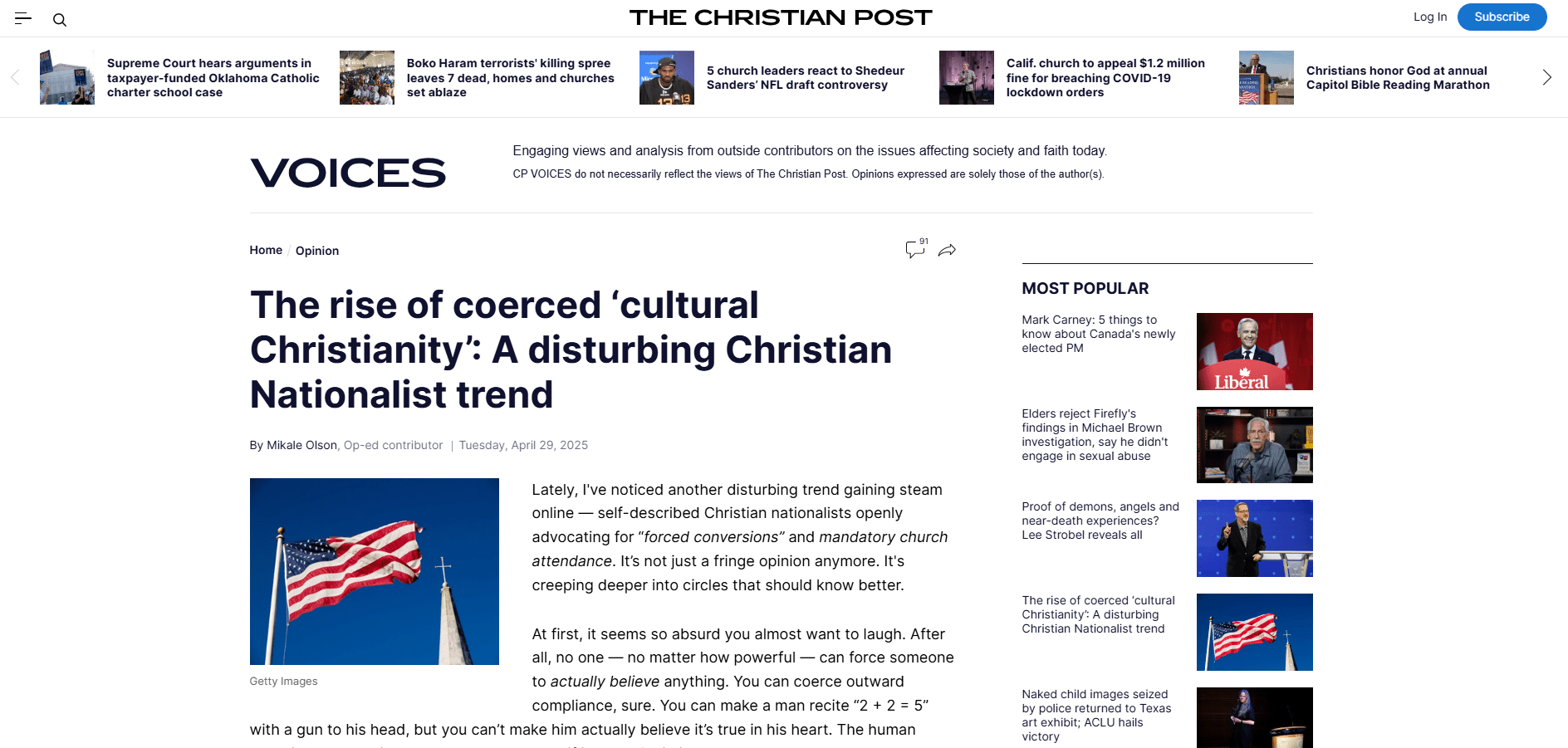The rise of coerced 'cultural Christianity': A disturbing Christian Nationalist trend