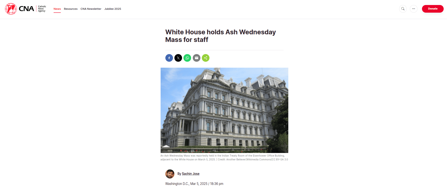White House holds Ash Wednesday Mass for staff