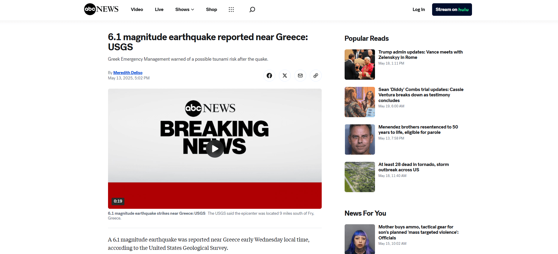 6.1 magnitude earthquake reported near Greece