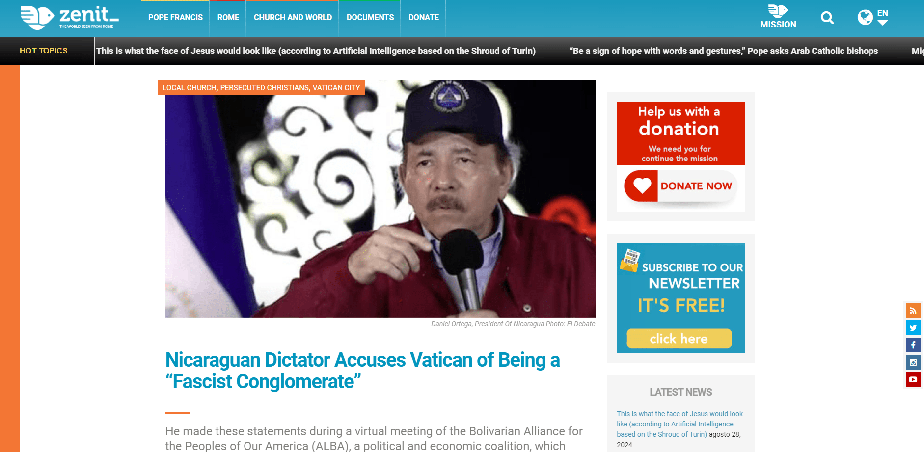 Nicaraguan Dictator Accuses Vatican of Being a “Fascist Conglomerate”