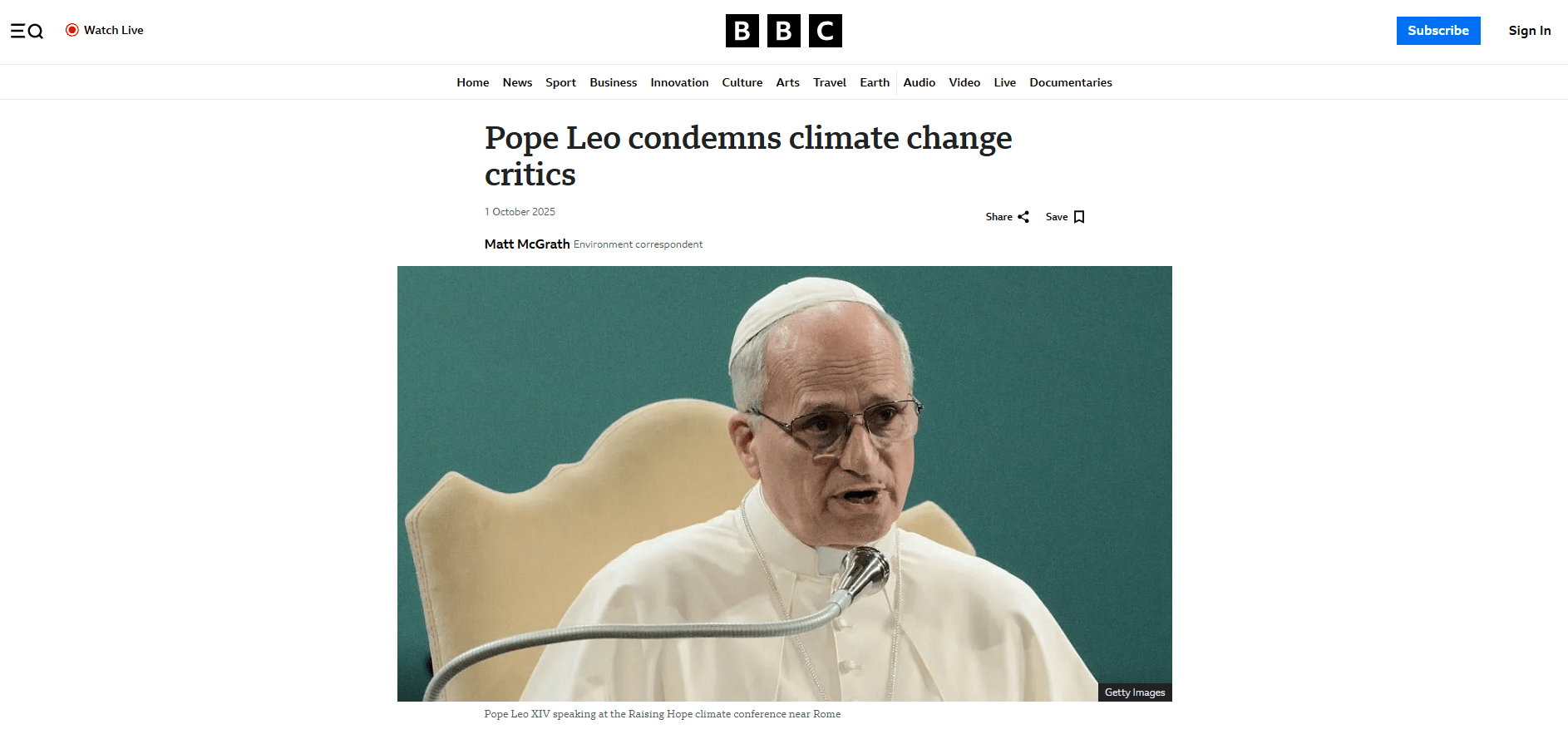In his first major statement on climate change, the pontiff criticizes those who minimize climate change.