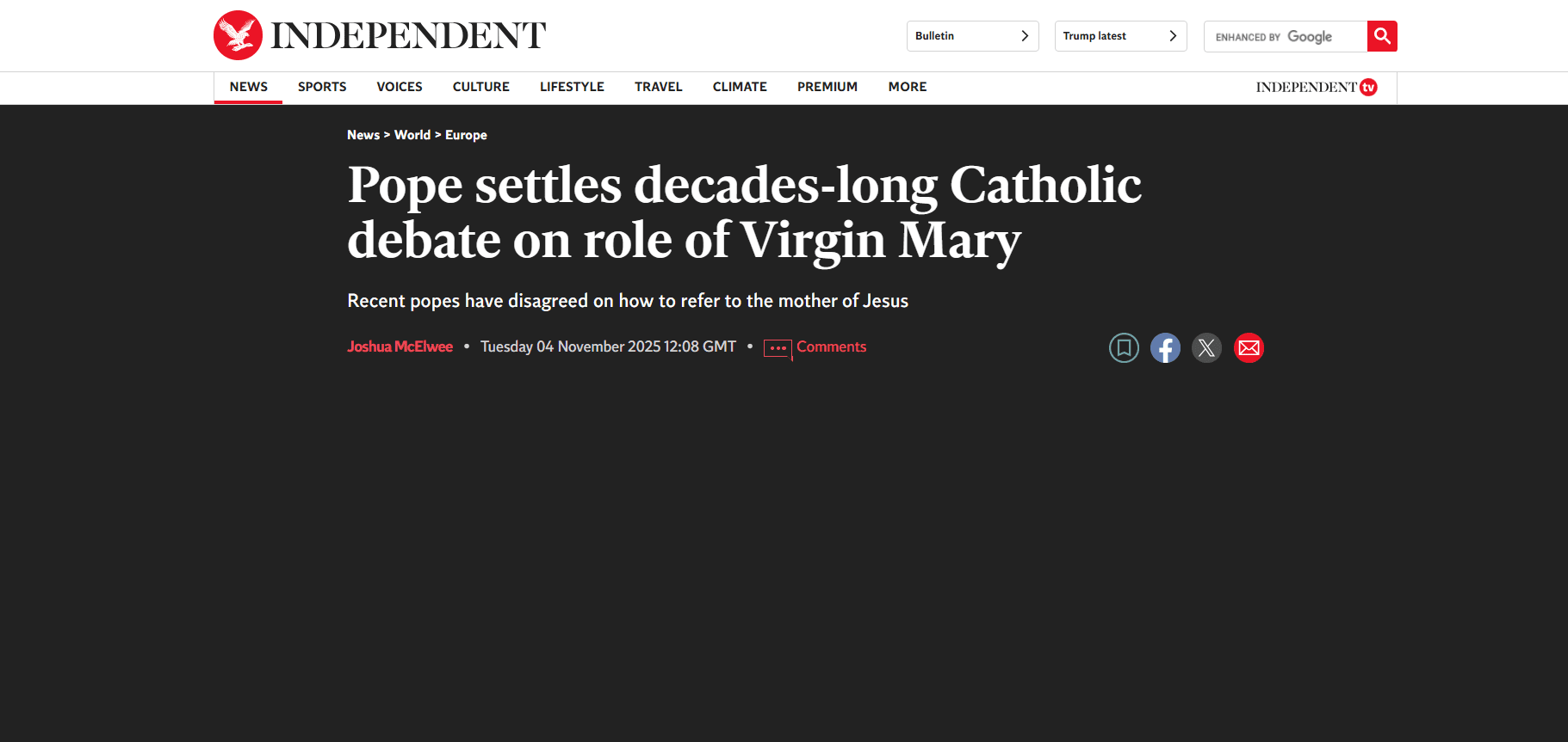 Pope settles decades-long Catholic debate on role of Virgin Mary