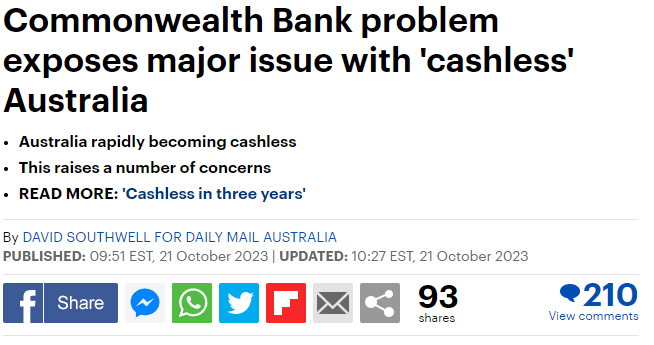 Commonwealth Bank problem exposes major issue with 'cashless' Australia