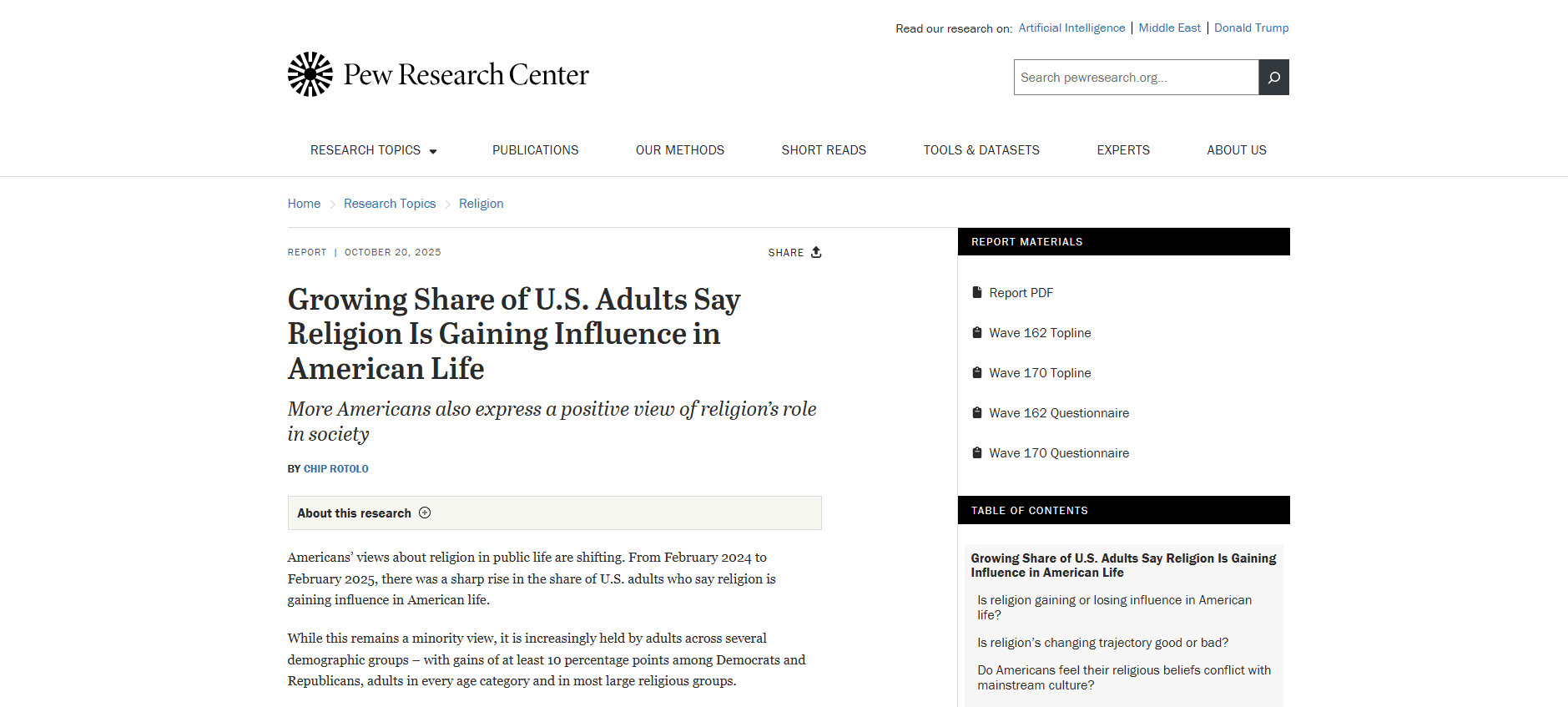 Growing Share of U.S. Adults Say Religion Is Gaining Influence in American Life