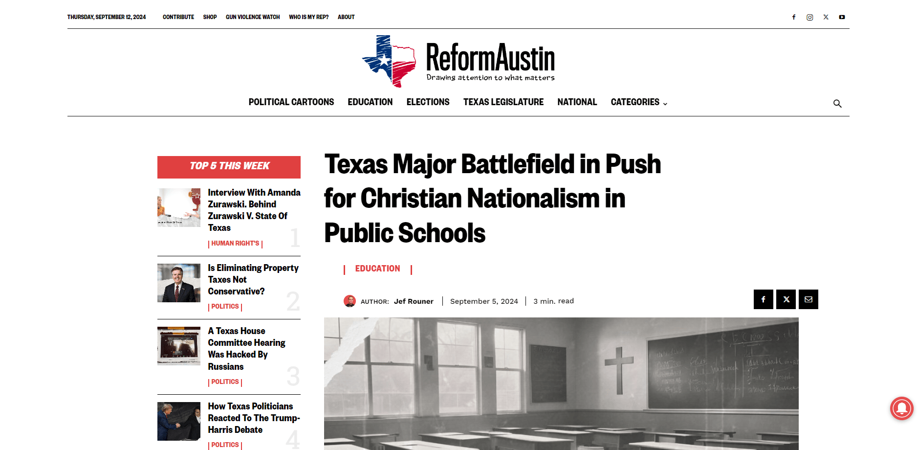 Texas Major Battlefield in Push for Christian Nationalism in Public Schools