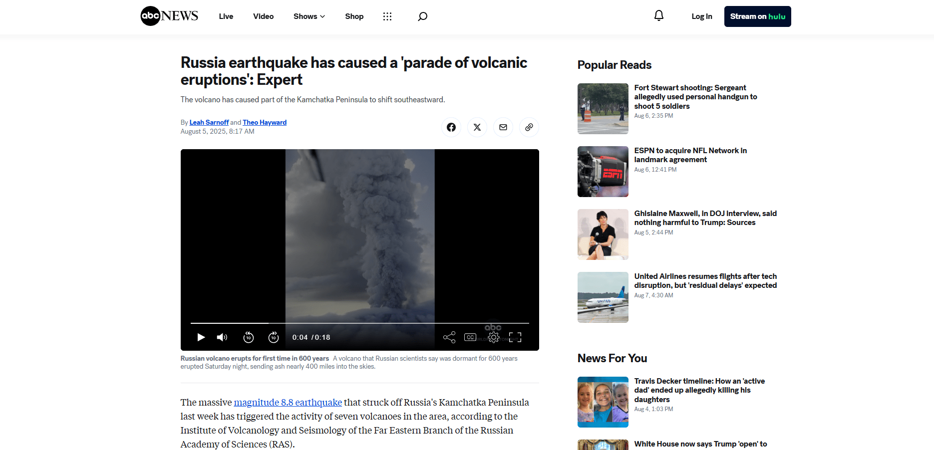 Russia earthquake has caused a 'parade of volcanic eruptions': Expert
