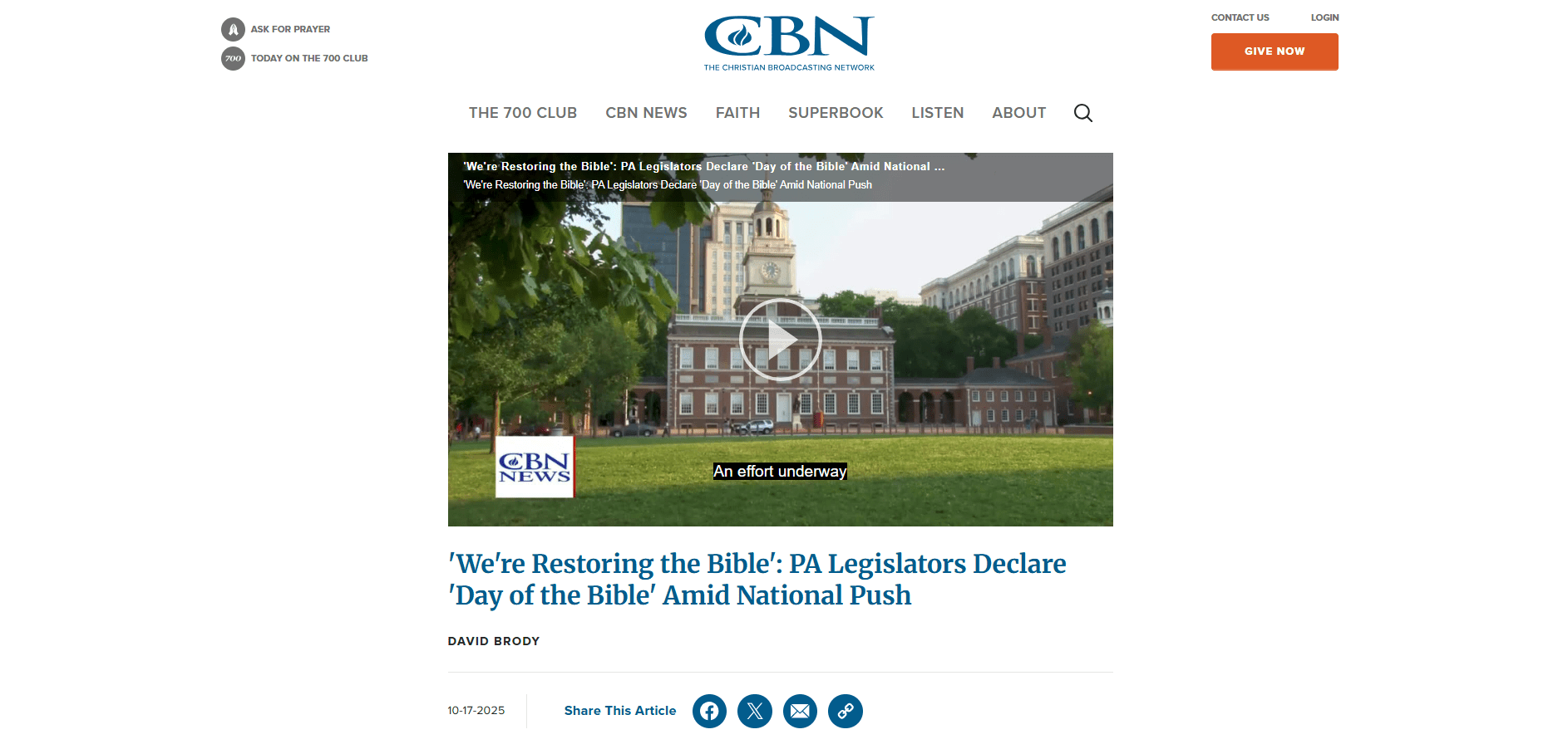 'We're Restoring the Bible': PA Legislators Declare 'Day of the Bible' Amid National Push
