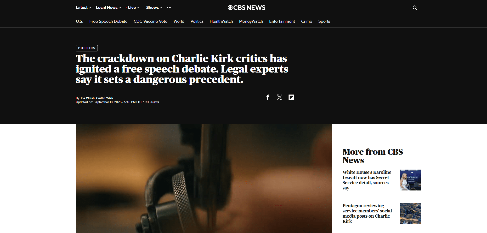 The crackdown on Charlie Kirk critics has ignited a free speech debate. Legal experts say it sets a dangerous precedent.